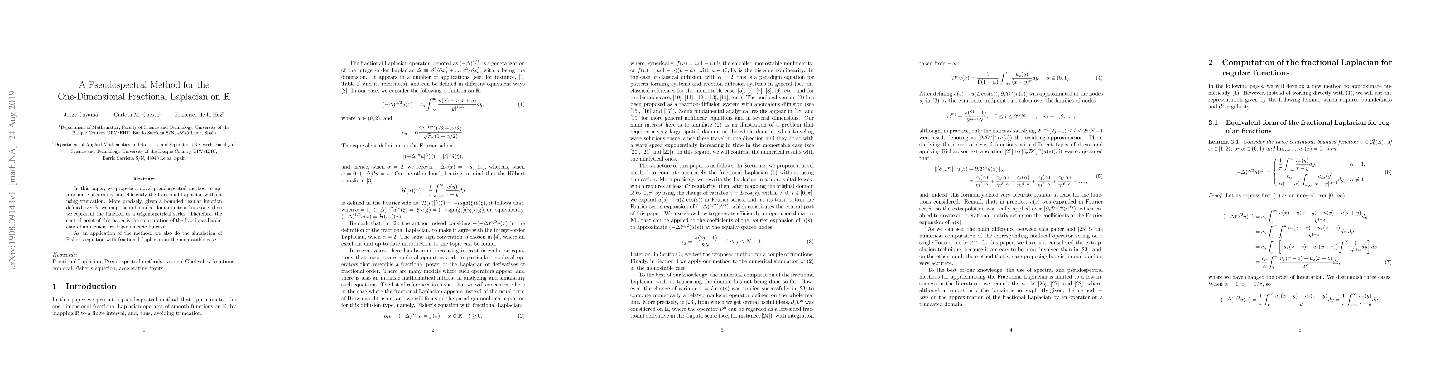 This paper proposes a pseudospectral method for accurately and efficiently approximating the one-dimensional fractional Laplacian without truncation. The method maps the unbounded domain to a finite one and represents the function as a trigonometric series, focusing on computing the fractional Laplacian of trigonometric functions. An application includes simulating Fisher's equation with a fractional Laplacian in the monostable case.