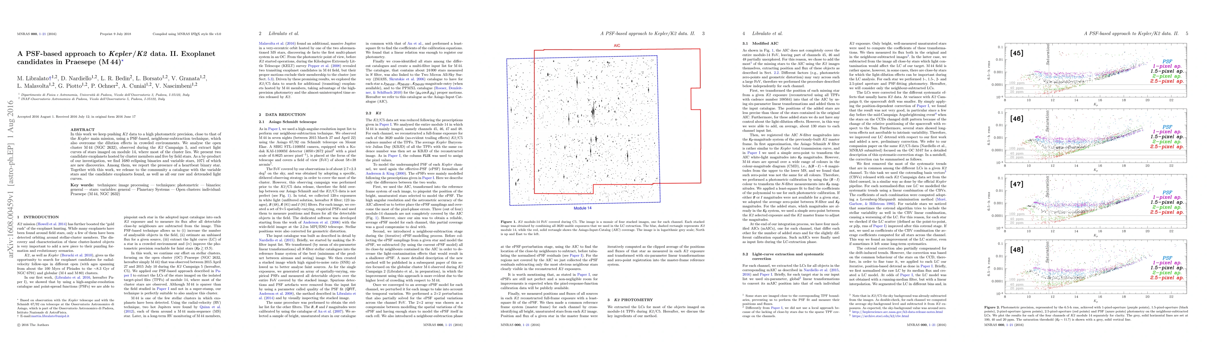 This paper utilizes a PSF-based technique to analyze K2 data from the Praesepe cluster, identifying two exoplanet candidates in cluster members and five in field stars. Additionally, it discovers 1680 variable stars, including 1071 new eclipsing binaries and a heartbeat binary.