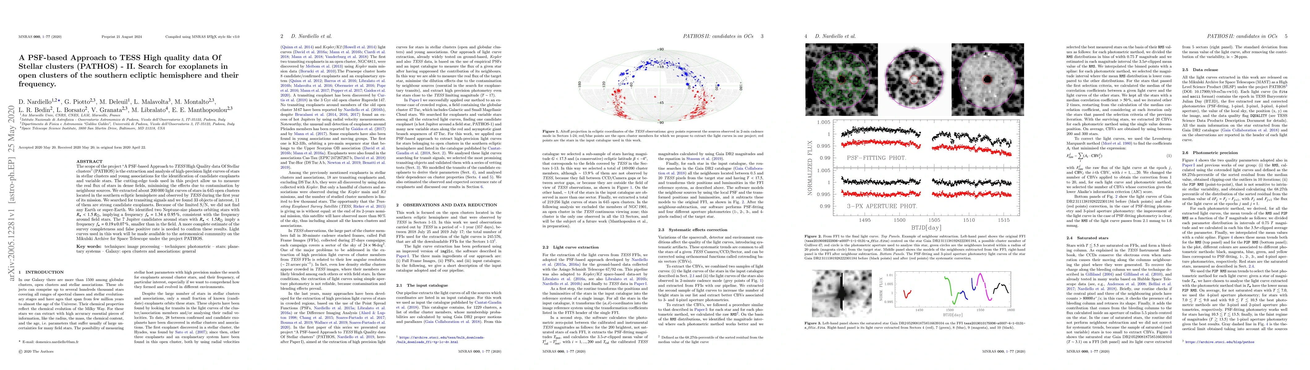 The scope of the project "A PSF-based Approach to TESS High Quality data Of Stellar clusters" (PATHOS) is the extraction and analysis of high-precision light curves of stars in stellar clusters and young associations for the identification of candidate exoplanets and variable stars. The cutting-edge tools used in this project allow us to measure the real flux of stars in dense fields, minimising the effects due to contamination by neighbour sources. We extracted about 200 000 light curves of stars in 645 open clusters located in the southern ecliptic hemisphere and observed by TESS during the first year of its mission. We searched for transiting signals and we found 33 objects of interest, 11 of them are strong candidate exoplanets. Because of the limited S/N, we did not find any Earth or super-Earth. We identified two Neptune-size planets orbiting stars with $R_{\star}<1.5\,R_{\odot}$, implying a frequency $f_{\star}=1.34 \pm 0.95\,\%$, consistent with the frequency around field stars. The 7 Jupiter candidates around stars with $R_{\star}<\,1.5R_{\odot}$ imply a frequency $f_{\star}=0.19\pm 0.07\,\%$, smaller than in the field. A more complete estimate of the survey completeness and false positive rate is needed to confirm these results. Light curves used in this work will be made available to the astronomical community on the Mikulski Archive for Space Telescope under the project PATHOS.