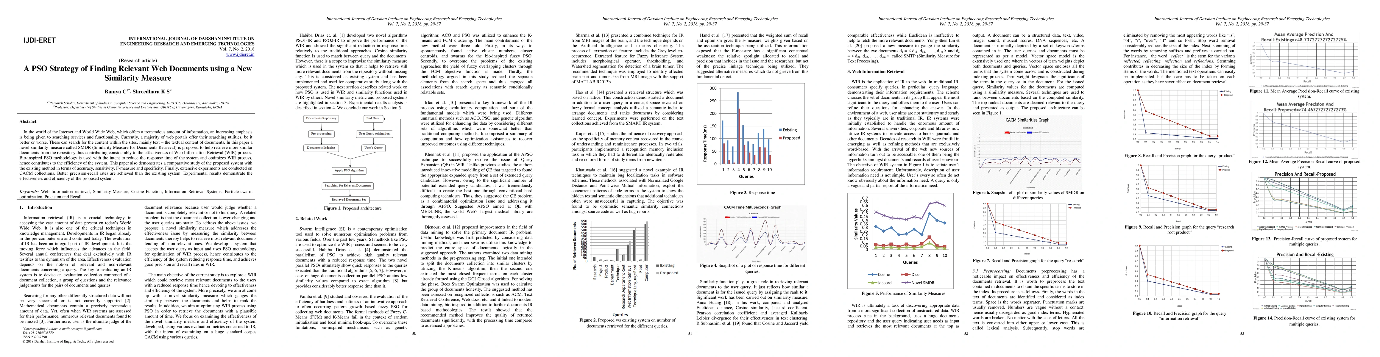 A new similarity measure called SMDR is proposed to improve web document retrieval, reducing response time through a bio-inspired PSO methodology. Experimental results show better precision-recall rates compared to existing systems.