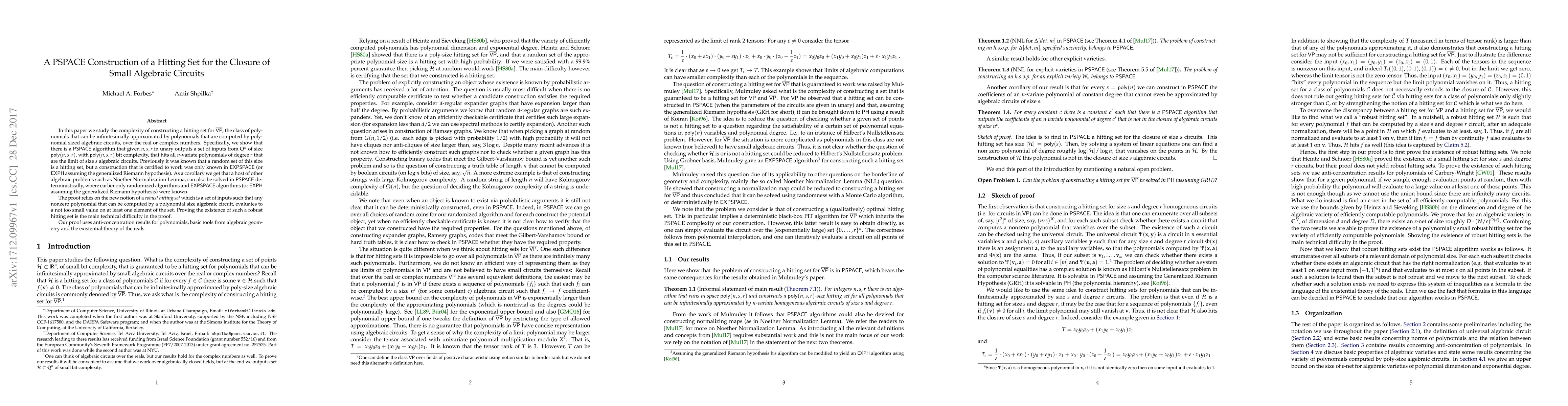 Mrinal Kumar, Ramprasad Saptharishi, Anamay Tengse
