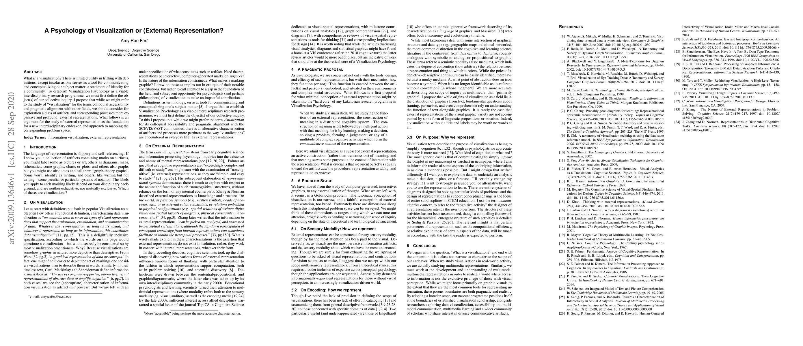 What is a visualization? There is limited utility in trifling with definitions, except insofar as one serves as a tool for communicating and conceptualizing our subject matter; a statement of identity for a community. To establish Visualization Psychology as a viable inter-disciplinary research programme, we must first define the object(s) of our collective inquiry. I propose that while we might refer to the study of "visualization" for the term's colloquial accessibility and pragmatic alignment with other fields, we should consider for exploration a class of artifacts and corresponding processes more expansive and profound: external representations. What follows is an argument for the study of external representation as the foundation for a new interdisciplinary endeavor, and approach to mapping the corresponding problem space.