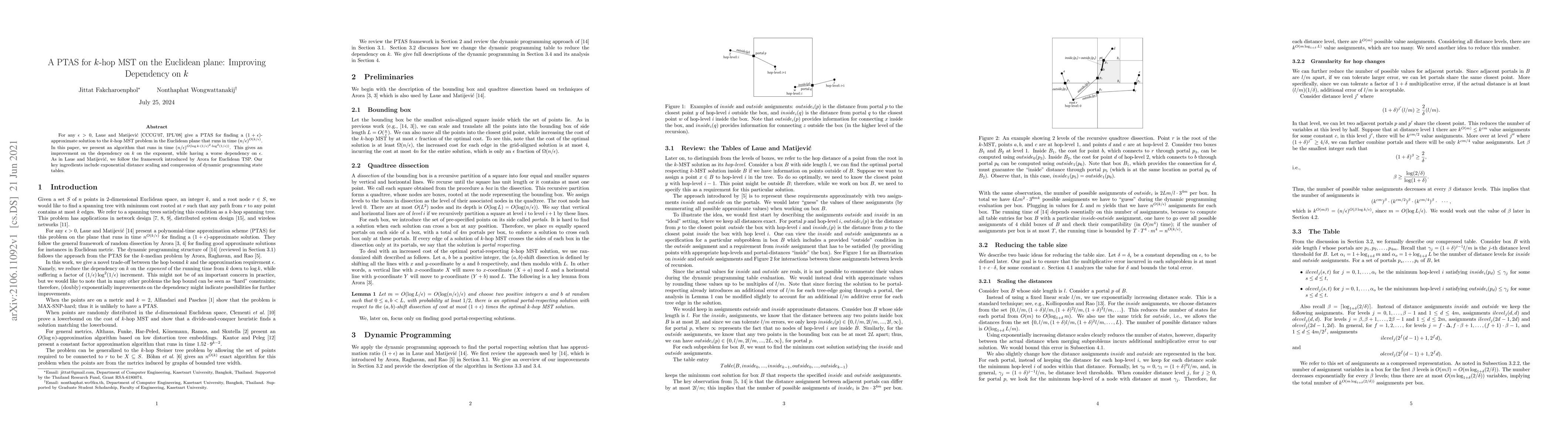 For any $\epsilon>0$, Laue and Matijevi\'{c} [CCCG'07, IPL'08] give a PTAS for finding a $(1+\epsilon)$-approximate solution to the $k$-hop MST problem in the Euclidean plane that runs in time $(n/\epsilon)^{O(k/\epsilon)}$. In this paper, we present an algorithm that runs in time $(n/\epsilon)^{O(\log k \cdot(1/\epsilon)^2\cdot\log^2(1/\epsilon))}$. This gives an improvement on the dependency on $k$ on the exponent, while having a worse dependency on $\epsilon$. As in Laue and Matijevi\'{c}, we follow the framework introduced by Arora for Euclidean TSP. Our key ingredients include exponential distance scaling and compression of dynamic programming state tables.