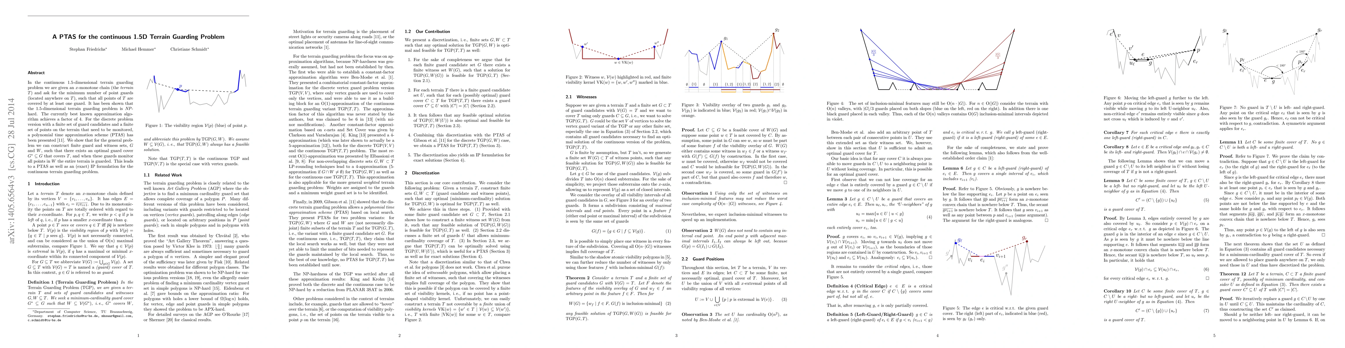 This paper presents a polynomial time approximation scheme (PTAS) for the continuous 1.5D terrain guarding problem, where the goal is to minimize the number of point guards on an x-monotone chain to cover all points. It constructs finite guard and witness sets to achieve this approximation.