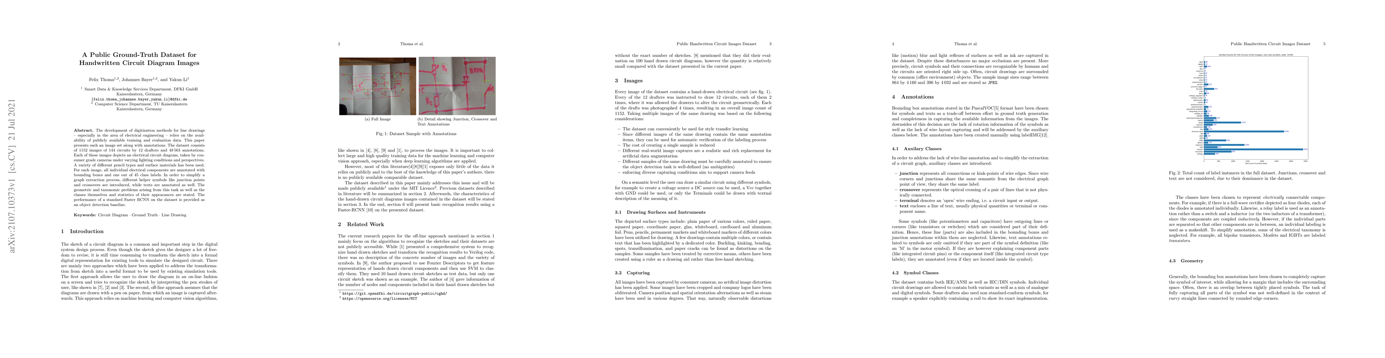 The development of digitization methods for line drawings (especially in the area of electrical engineering) relies on the availability of publicly available training and evaluation data. This paper presents such an image set along with annotations. The dataset consists of 1152 images of 144 circuits by 12 drafters and 48 563 annotations. Each of these images depicts an electrical circuit diagram, taken by consumer grade cameras under varying lighting conditions and perspectives. A variety of different pencil types and surface materials has been used. For each image, all individual electrical components are annotated with bounding boxes and one out of 45 class labels. In order to simplify a graph extraction process, different helper symbols like junction points and crossovers are introduced, while texts are annotated as well. The geometric and taxonomic problems arising from this task as well as the classes themselves and statistics of their appearances are stated. The performance of a standard Faster RCNN on the dataset is provided as an object detection baseline.