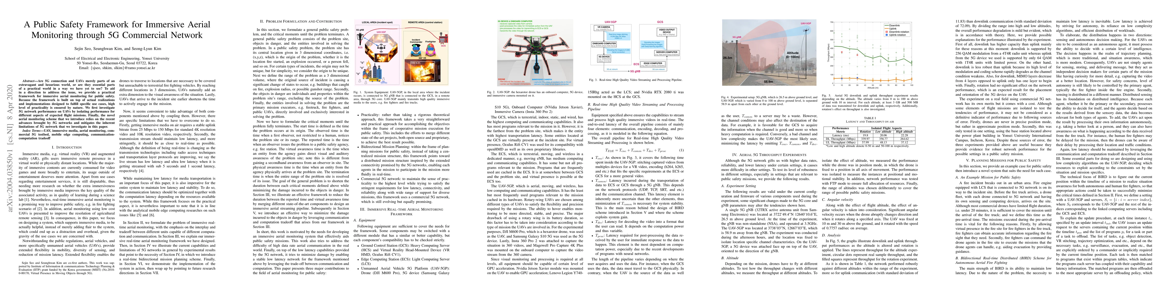 Are 5G connection and UAVs merely parts of an extravagant and luxurious world, or are they essential parts of a practical world in a way we have yet to see? To aid in a direction to address the issue, we provide a practical framework for immersive aerial monitoring for public safety. Because the framework is built on top of actual realizations and implementations designed to fulfill specific use cases, high level of practicality is ensured by nature. We first investigate 5G network performance on UAVs by isolating performance for different aspects of expected flight missions. Finally, the novel aerial monitoring scheme that we introduce relies on the recent advances brought by 5G networks and mitigates the inherent limitations of 5G network that we investigate in this paper.