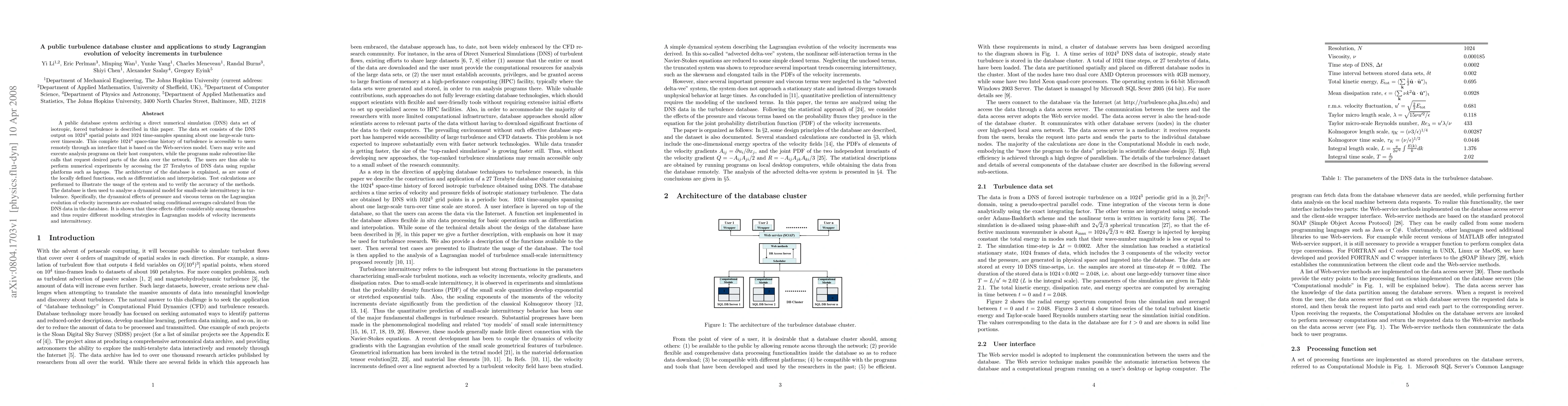 This paper introduces a public turbulence database based on direct numerical simulation (DNS) data of isotropic turbulence, providing remote access to 27 Terabytes of data. The database is used to study the Lagrangian evolution of velocity increments, revealing significant differences in the dynamical effects of pressure and viscous terms that necessitate distinct modeling strategies.