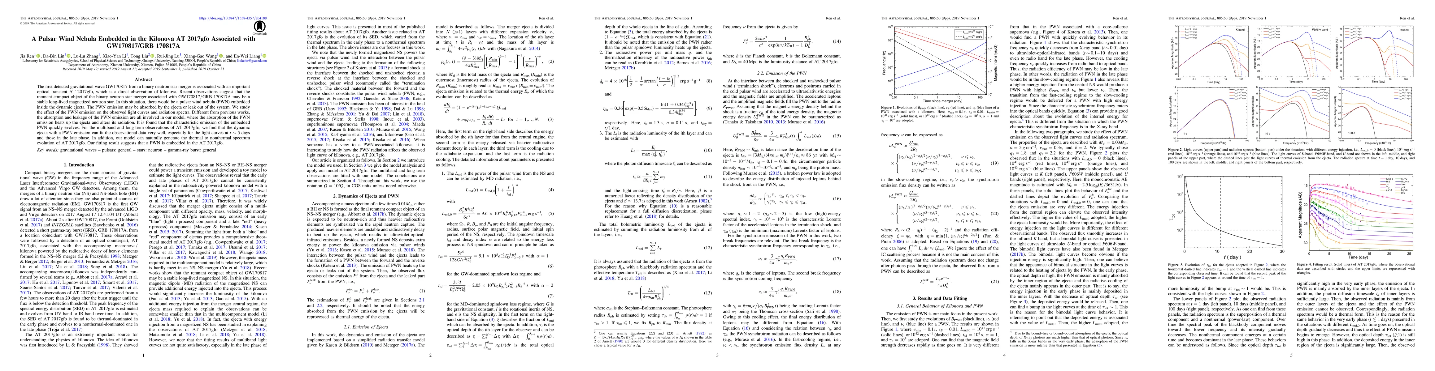 This paper investigates the presence of a pulsar wind nebula (PWN) within the kilonova AT2017gfo, linked to the gravitational wave event GW170817 from a binary neutron star merger. The study finds that the PWN emission, either absorbed or leaked, significantly influences the observed light curves and spectra, fitting well with multiband and long-term observations, especially around 5 days post-merger and in the late phase.