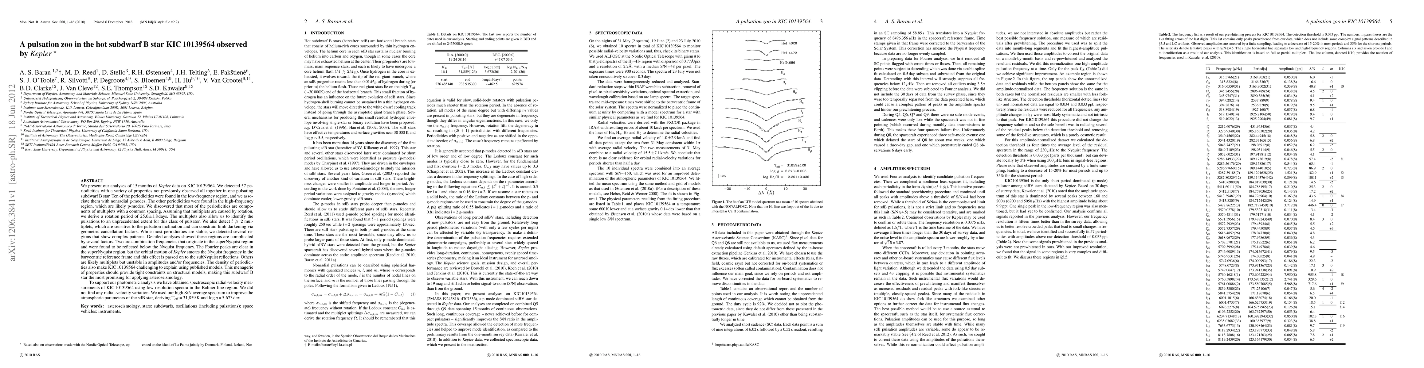 This study analyzes 15 months of Kepler data on the hot subdwarf B star KIC 10139564, detecting 57 periodicities, including nonradial g-modes and p-modes, and identifying a rotation period of 25.6(1.8) days. The complex pulsation patterns and multiplets offer unprecedented insights into the star's structure, making it a prime target for asteroseismology.