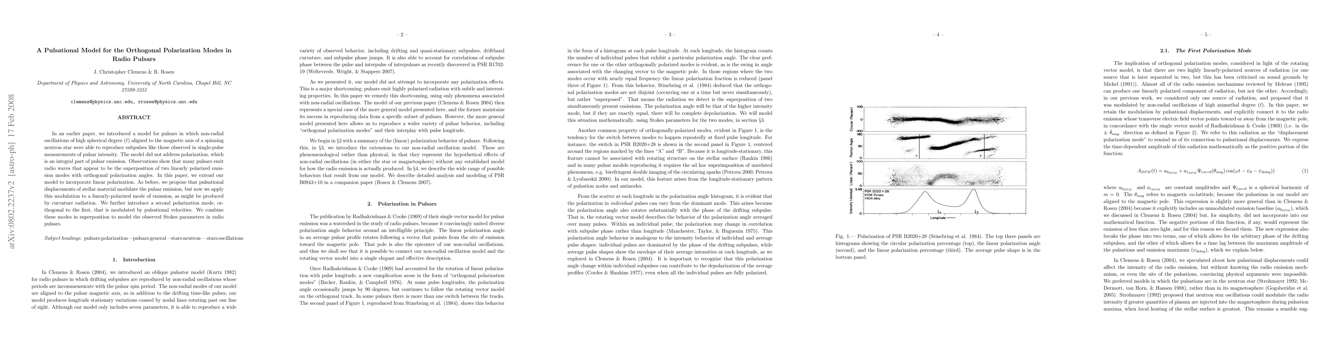 This paper extends a previous model of pulsar subpulses to include orthogonal polarization modes, proposing that pulsational displacements modulate linearly-polarized emission, while a second orthogonal mode is modulated by pulsational velocities to reproduce observed radio pulsar polarization.