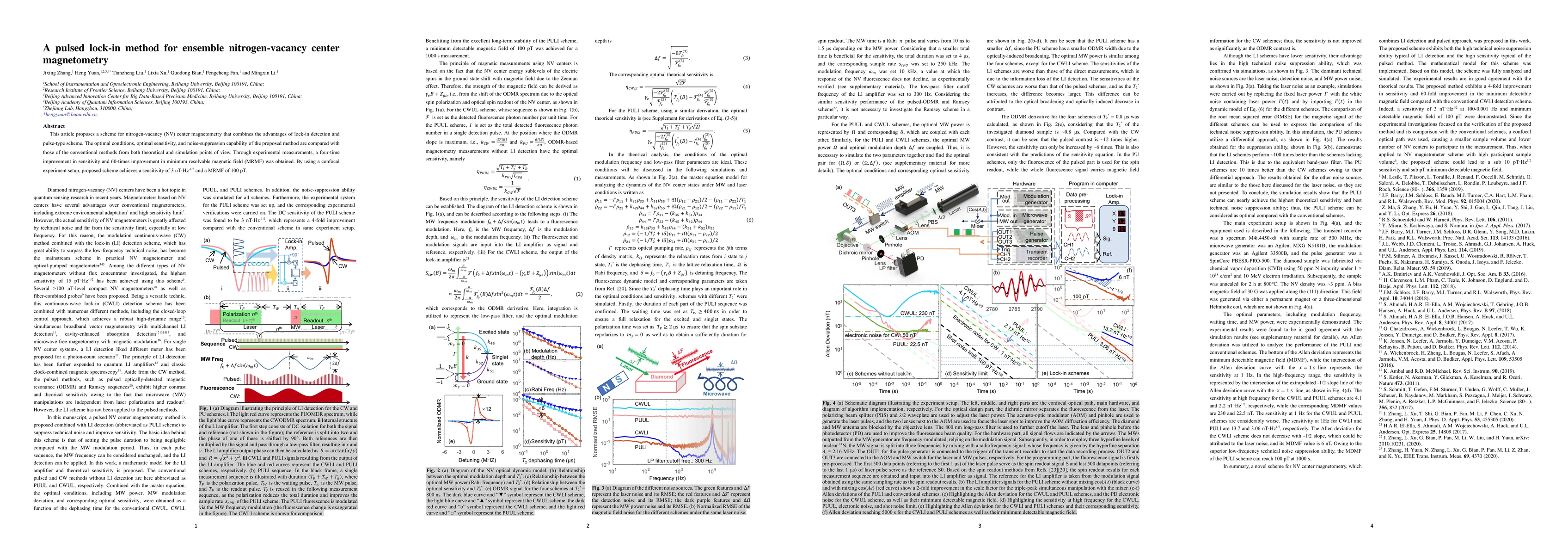 This article proposes a scheme for nitrogen-vacancy (NV) center magnetometry that combines the advantages of lock-in detection and pulse-type scheme. The optimal conditions, optimal sensitivity, and noise-suppression capability of the proposed method are compared with those of the conventional methods from both theoretical and simulation points of view. Through experimental measurements, a four-time improvement in sensitivity and 60-times improvement in minimum resolvable magnetic field (MRMF) was obtained. By using a confocal experiment setup, proposed scheme achieves a sensitivity of 3 nT/Hz1/2 and a MRMF of 100 pT.
