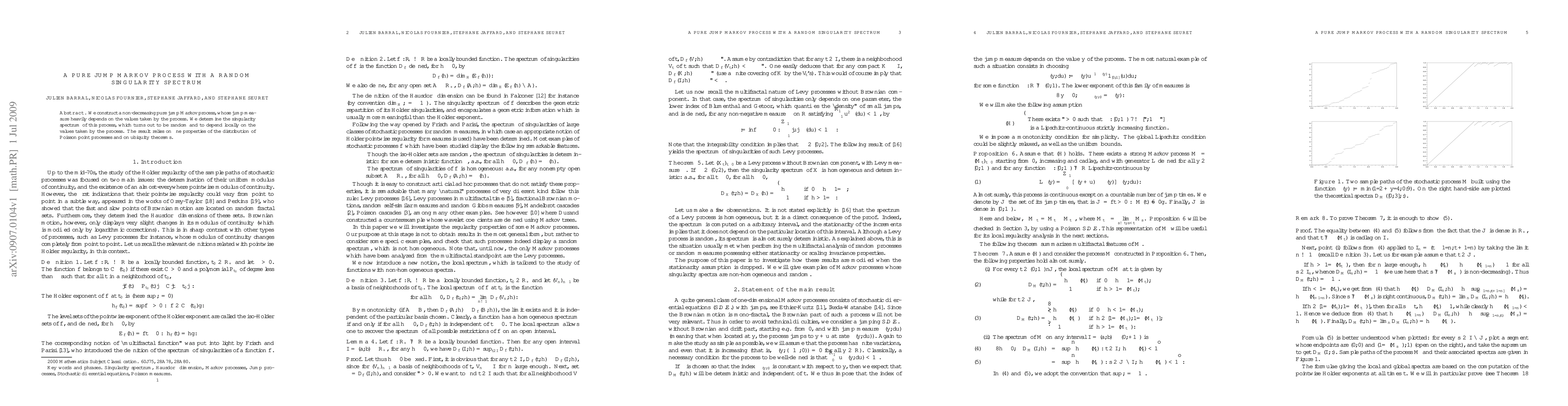 We construct a non-decreasing pure jump Markov process, whose jump measure heavily depends on the values taken by the process. We determine the singularity spectrum of this process, which turns out to be random and to depend locally on the values taken by the process. The result relies on fine properties of the distribution of Poisson point processes and on ubiquity theorems.