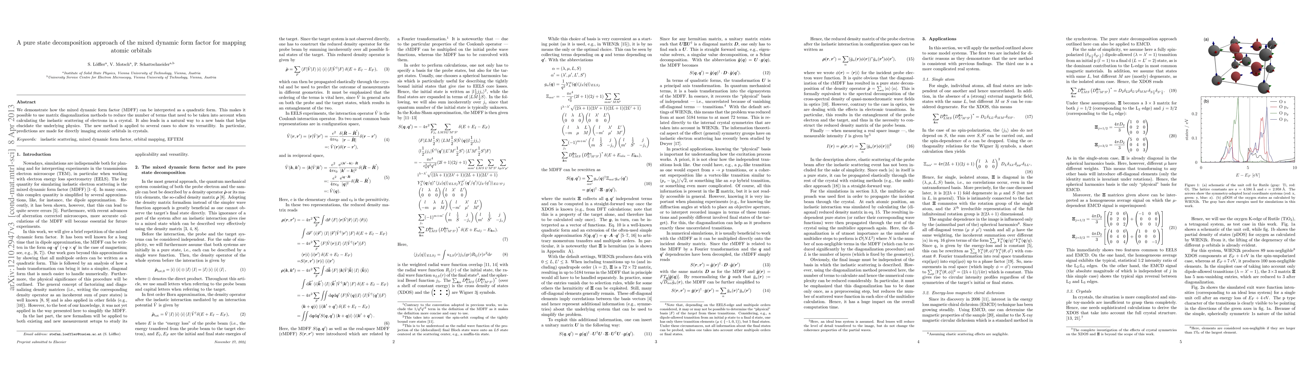 Researchers have found a way to simplify calculations for imaging atomic orbitals in crystals using matrix diagonalization methods. This approach reduces the complexity of the mixed dynamic form factor, leading to more accurate predictions.