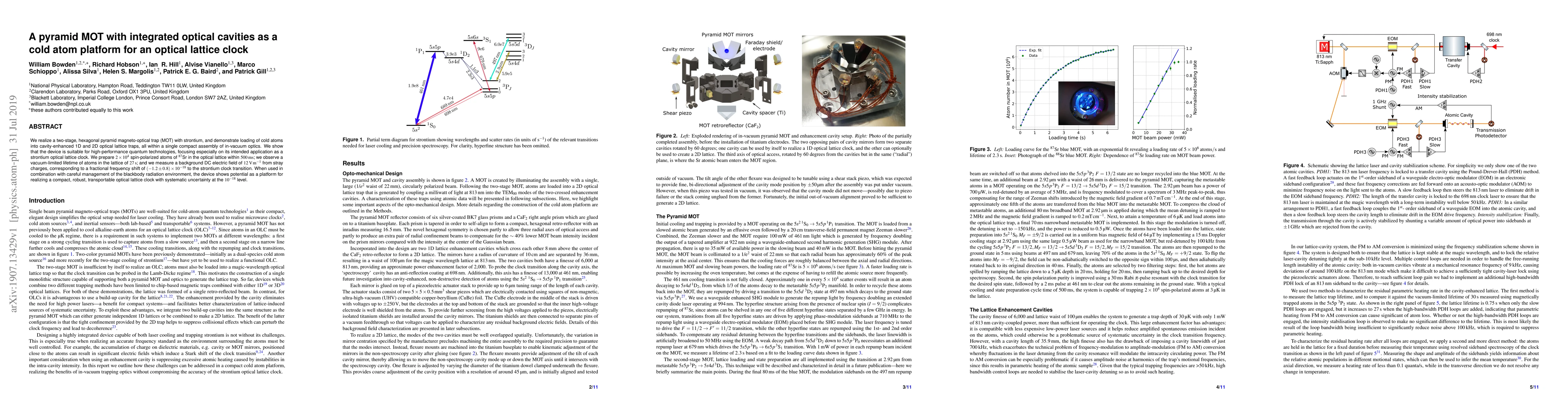 We realize a two-stage, hexagonal pyramid magneto-optical trap (MOT) with strontium, and demonstrate loading of cold atoms into cavity-enhanced 1D and 2D optical lattice traps, all within a single compact assembly of in-vacuum optics. We show that the device is suitable for high-performance quantum technologies, focusing especially on its intended application as a strontium optical lattice clock. We prepare $2\times 10^4$ spin-polarized atoms of $^{87}$Sr in the optical lattice within 500 ms; we observe a vacuum-limited lifetime of atoms in the lattice of 27 s; and we measure a background DC electric field of 12 Vm$^{-1}$ from stray charges, corresponding to a fractional frequency shift of $(-1.2\times 0.8)\times 10^{-18}$ to the strontium clock transition. When used in combination with careful management of the blackbody radiation environment, the device shows potential as a platform for realizing a compact, robust, transportable optical lattice clock with systematic uncertainty at the $10^{-18}$ level.