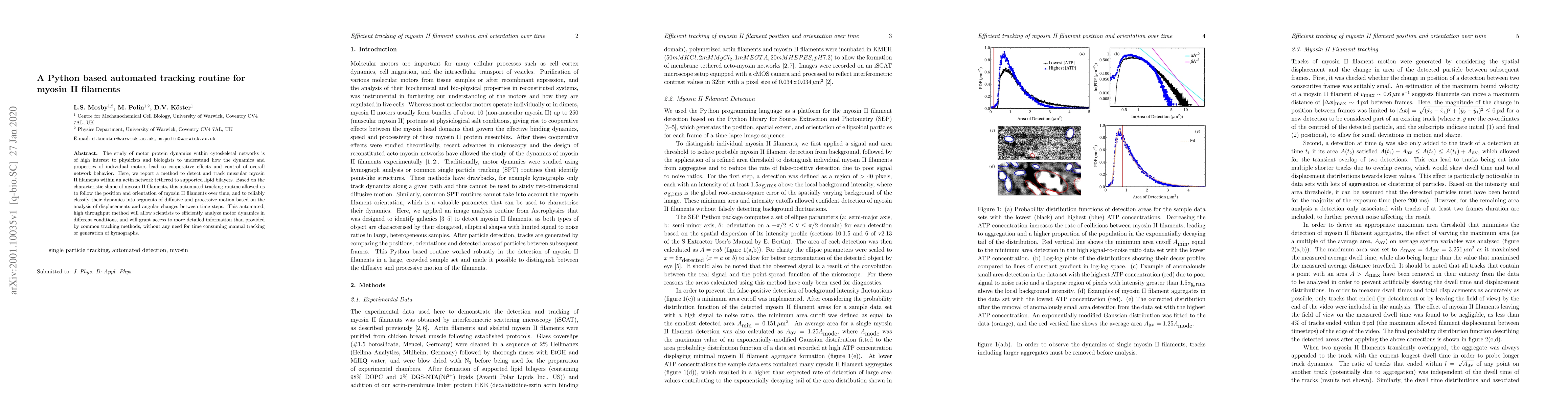 This paper presents a Python-based automated tracking routine for detecting and following myosin II filaments within actin networks, classifying their motion into diffusive and processive segments, and providing high-throughput analysis without manual intervention. The method offers detailed insights into motor protein dynamics compared to traditional tracking techniques.