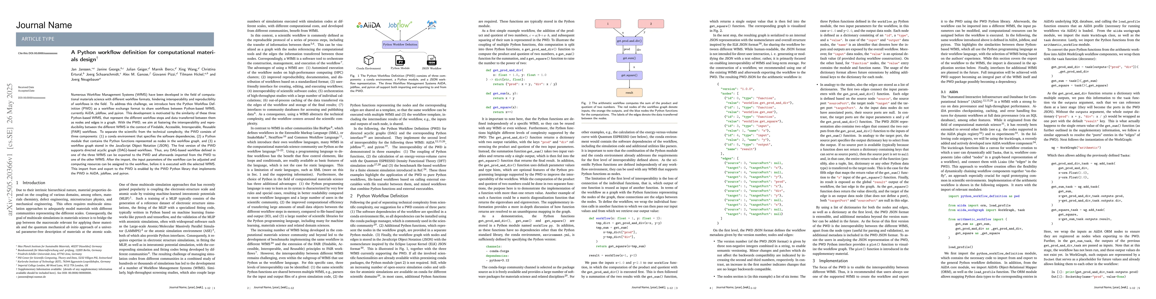Researchers introduced a Python Workflow Definition (PWD) to improve interoperability and reproducibility of workflows in computational materials science, enabling seamless sharing between popular workflow management systems.
