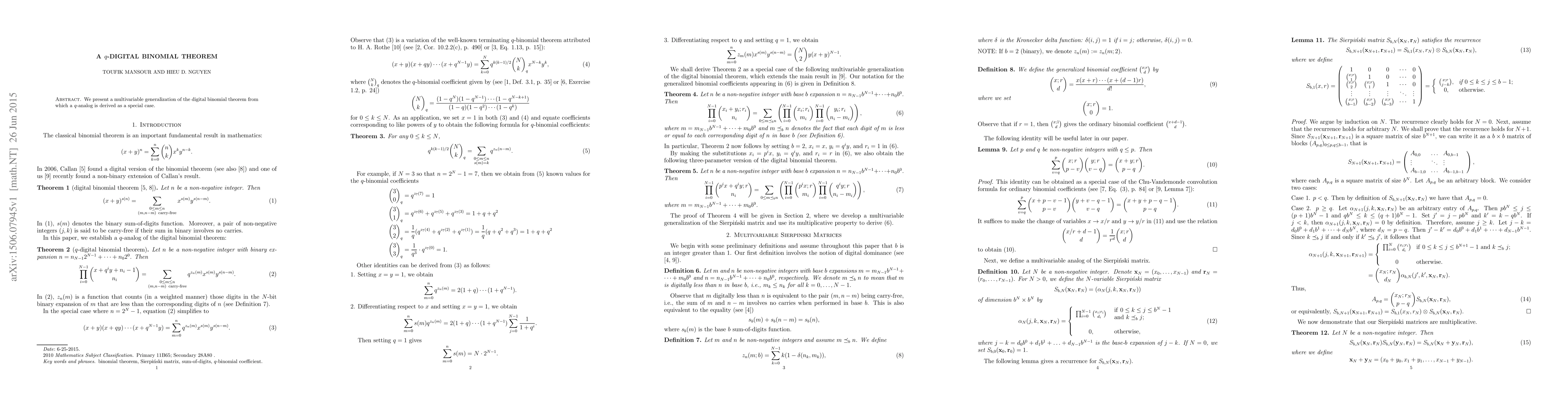 We present a multivariable generalization of the digital binomial theorem from which a q-analog is derived as a special case.