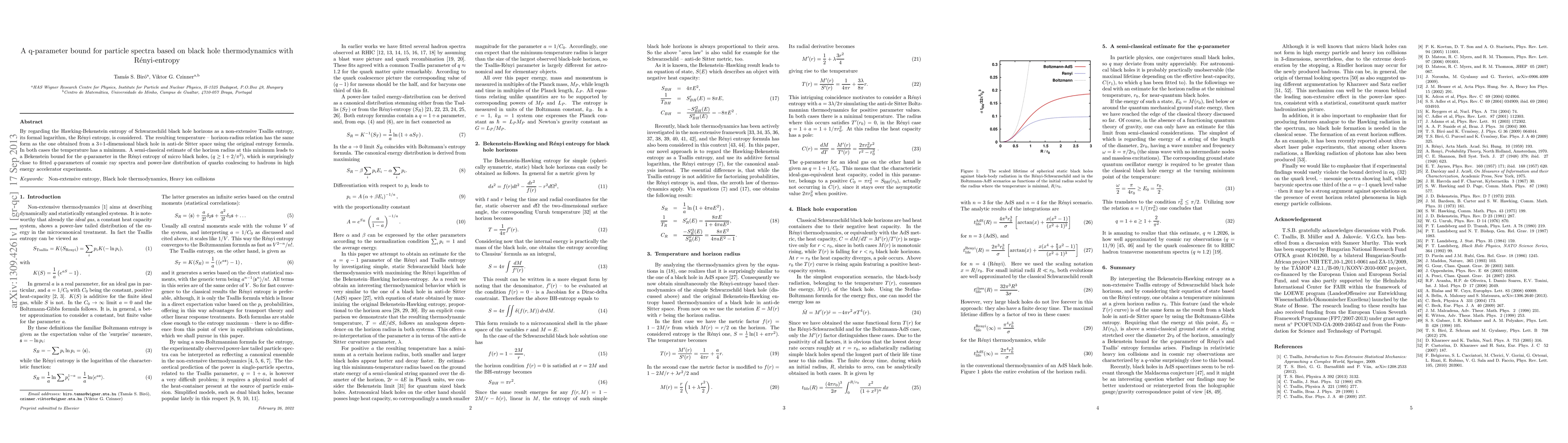 Researchers found a q-parameter bound for particle spectra based on black hole thermodynamics using Rényi-entropy, which is surprisingly close to fitted q-parameters in cosmic ray spectra and high-energy accelerator experiments.
