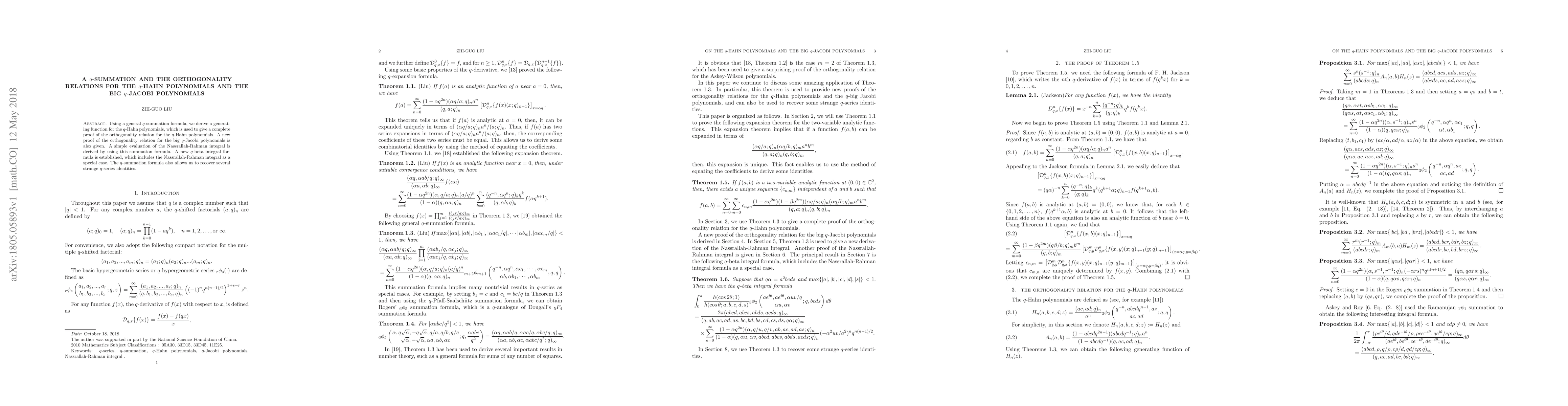 Using a general $q$-summation formula, we derive a generating function for the $q$-Hahn polynomials, which is used to give a complete proof of the orthogonality relation for the $q$-Hahn polynomials. A new proof of the orthogonality relation for the big $q$-Jacobi polynomials is also given. A simple evaluation of the Nassrallah-Rahman integral is derived by using this summation formula. A new $q$-beta integral formula is established, which includes the Nassrallah-Rahman integral as a special case. The $q$-summation formula also allows us to recover several strange $q$-series identities.