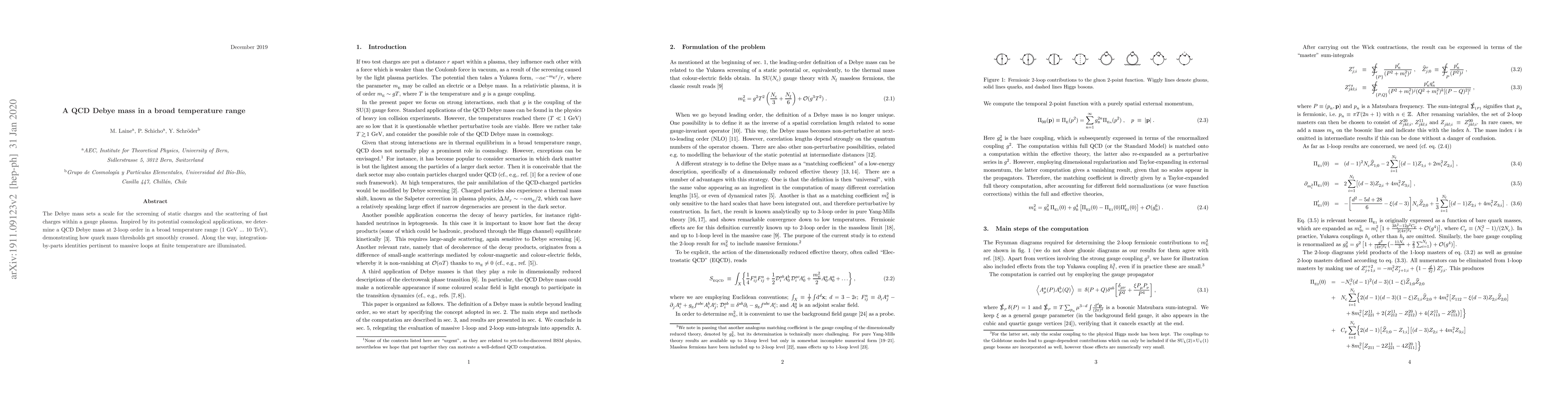This paper calculates the QCD Debye mass at 2-loop order across a wide temperature range (1 GeV to 10 TeV), showing how quark mass thresholds are smoothly crossed, and highlights relevant integration-by-parts identities for massive loops at finite temperature.