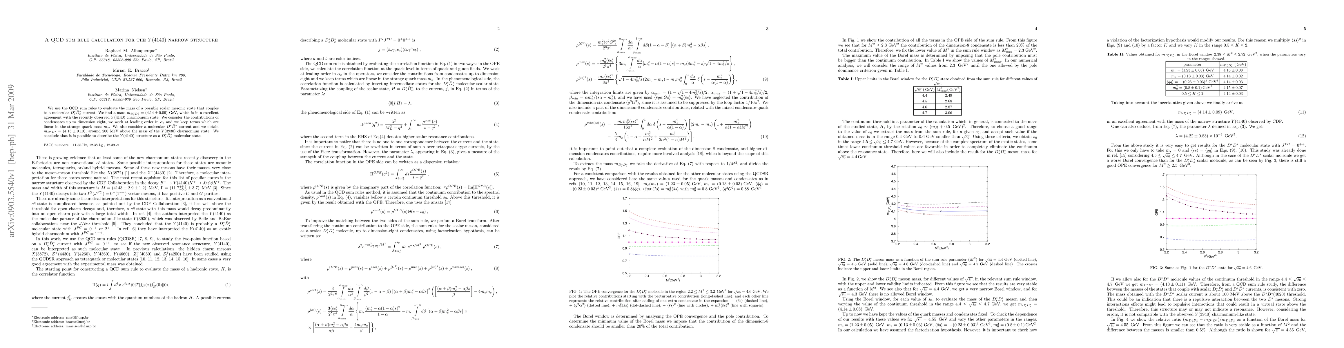 This paper uses QCD sum rules to determine the mass of a scalar mesonic state associated with the Y(4140) charmonium state, finding a mass of $(4.14\pm 0.09)$ GeV, consistent with observations. It suggests that the Y(4140) could be a $D_s^*\bar{D}_s^*$ molecular state.