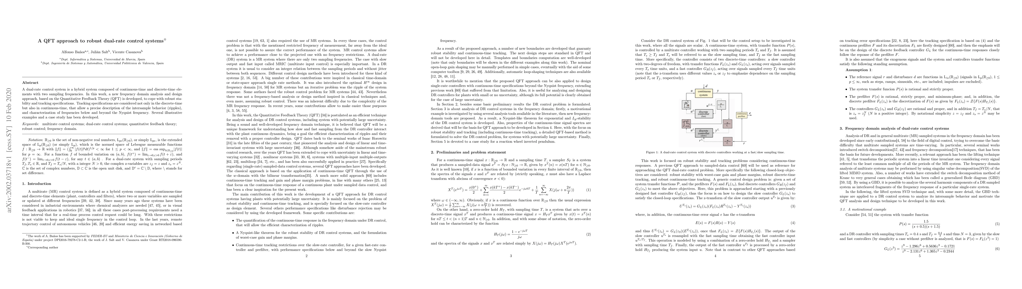 A dual-rate control system is a hybrid system composed of continuous-time and discrete-time elements with two sampling frequencies. In this work, a new frequency domain analysis and design approach, based on the Quantitative Feedback Theory (QFT) is developed, to cope with robust stability and tracking specifications. Tracking specifications are considered not only in the discrete-time but also in continuous-time, that allow a precise description of the intersample behavior (ripples), and characterization of frequencies below and beyond the Nyquist frequency. Several illustrative examples and a case study has been developed.