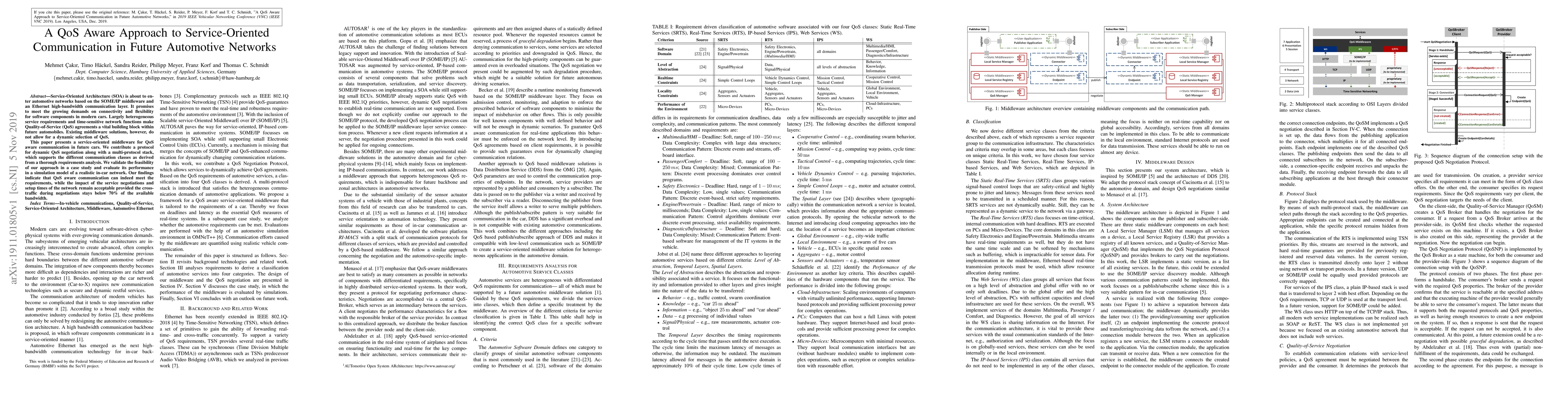 This paper introduces a QoS-aware middleware for service-oriented communication in future automotive networks, featuring a dynamic QoS negotiation protocol. The proposed solution supports diverse communication classes and demonstrates acceptable performance in simulations, provided negotiation cross-traffic does not exceed 70% of available bandwidth.