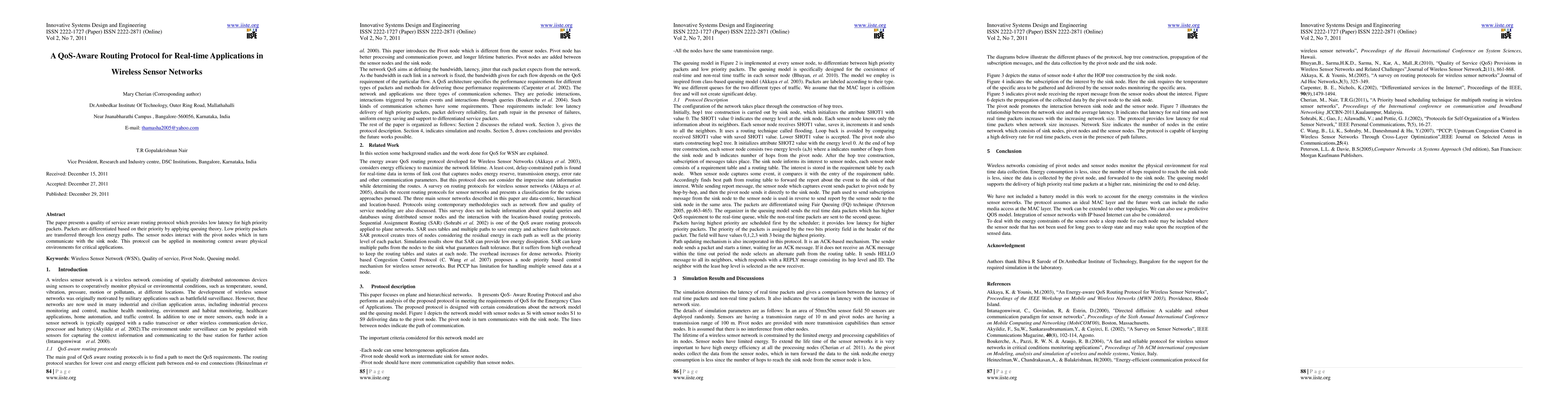 Summary: This paper introduces a QoS-aware routing protocol for wireless sensor networks that prioritizes low-latency for high-priority packets using queuing theory, while optimizing energy usage for low-priority packets. It is designed for monitoring critical applications in context-aware environments.