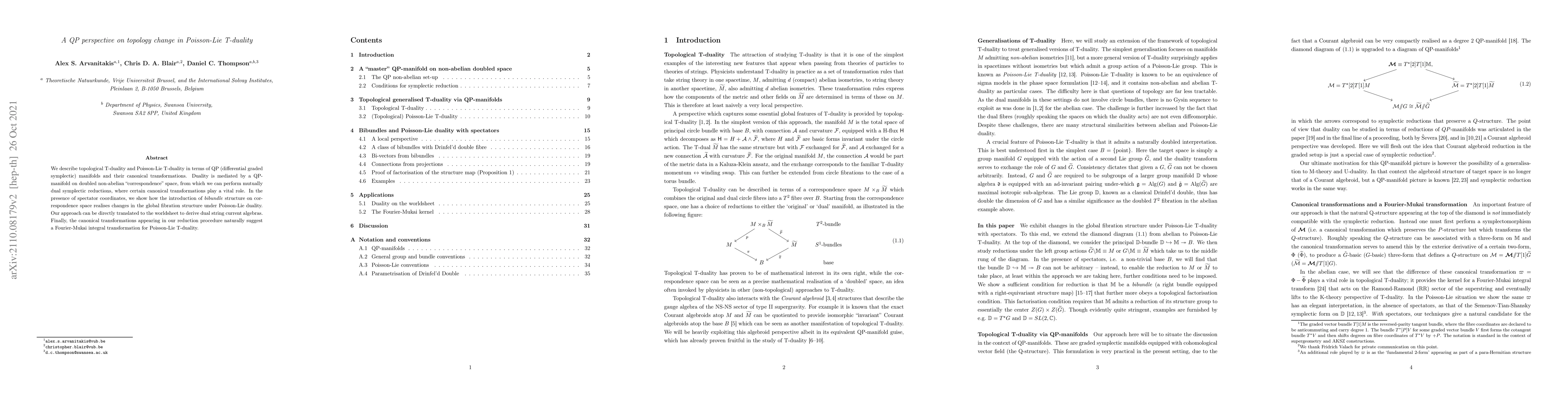 This paper explores topological and Poisson-Lie T-duality through QP (differential graded symplectic) manifolds, showing how these dualities are mediated by transformations on a doubled non-abelian correspondence space. The study reveals how spectator coordinates and bibundle structures on the correspondence space affect global fibration changes under duality and suggests a Fourier-Mukai integral transformation.