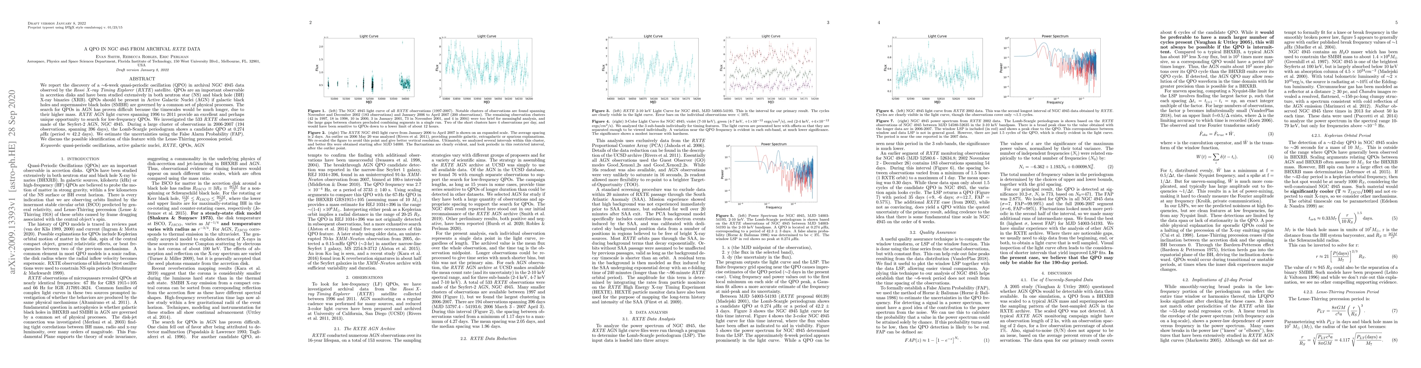 This paper reports the discovery of a ~6-week quasi-periodic oscillation (QPO) in archival data from NGC 4945 observed by the RXTE satellite, suggesting common physical processes governing galactic and supermassive black holes. The study identifies a potential QPO at 0.274 $\mu$Hz, which could correspond to the Lense-Thirring precession period.