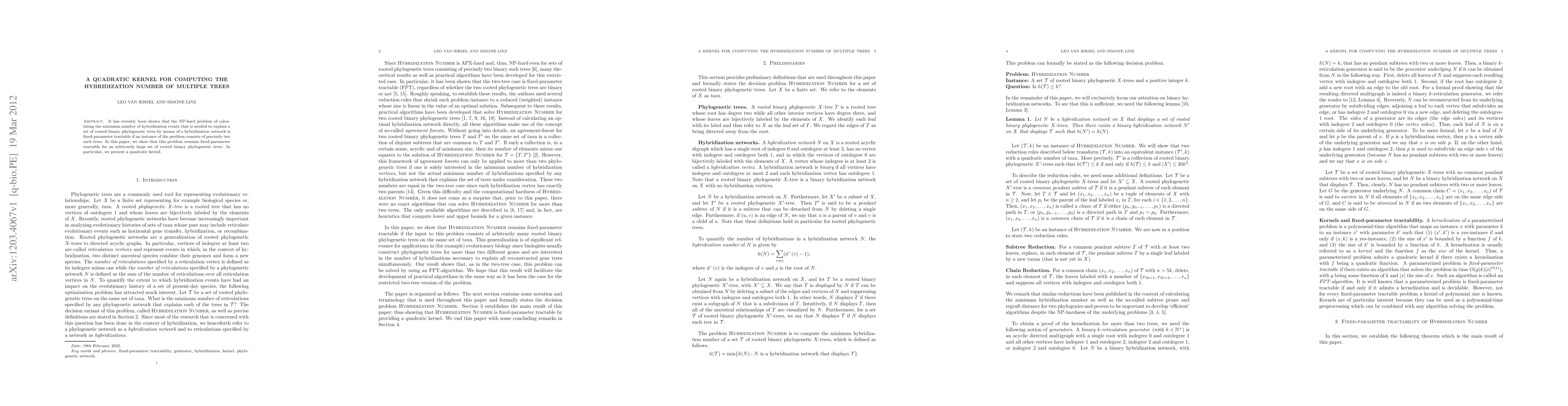 This paper demonstrates that the NP-hard problem of determining the minimum hybridization events needed to explain multiple rooted binary phylogenetic trees using a hybridization network remains fixed-parameter tractable. It introduces a quadratic kernel to solve this problem for an arbitrarily large set of trees.