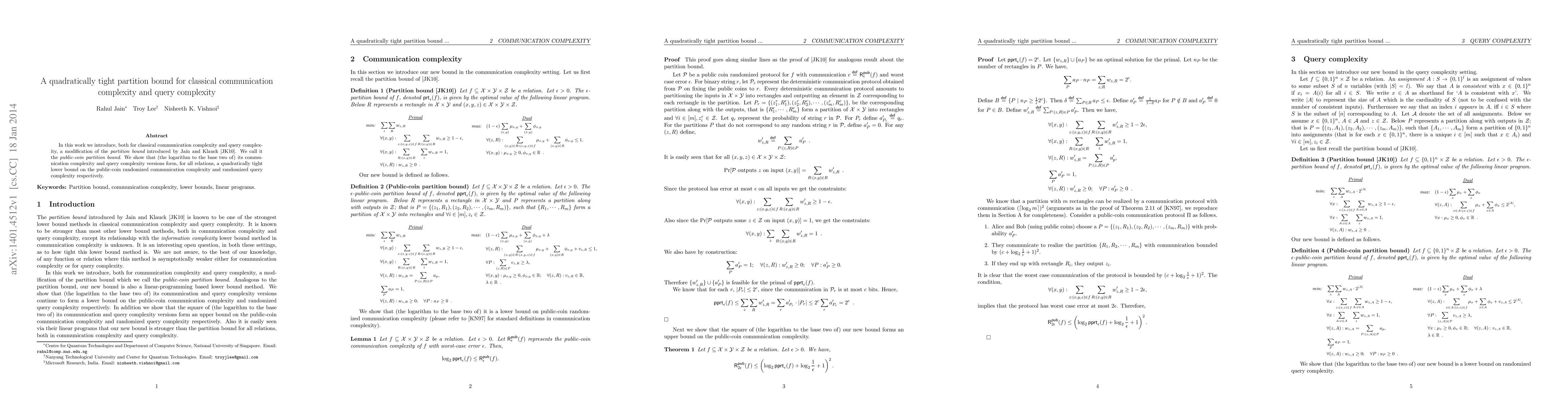 This paper presents a modified version of the 'partition bound' called the 'public-coin partition bound' for classical communication and query complexity. It demonstrates that this new bound is quadratically tight for both randomized communication and query complexity.