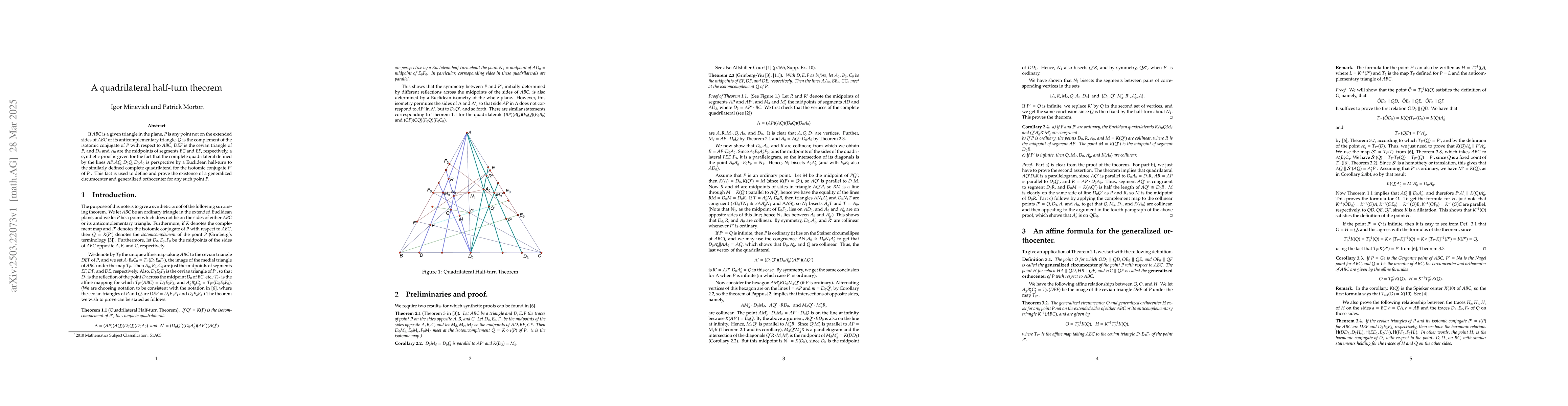 Researchers prove a synthetic theorem showing that a specific quadrilateral is perspective under a Euclidean half-turn for any point P not on triangle ABC or its anticomplementary triangle, leading to the existence of generalized circumcenter and orthocenter.