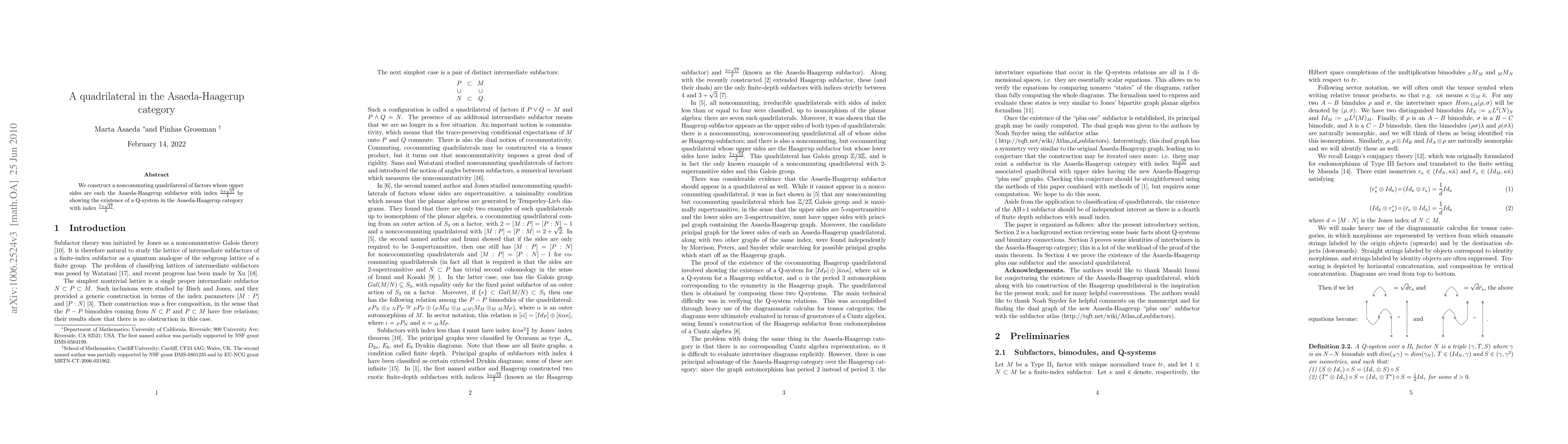 This paper constructs a noncommuting quadrilateral of factors, with each upper side being the Asaeda-Haagerup subfactor of index $\frac{5+\sqrt{17}}{2}$, and demonstrates the existence of a Q-system in the Asaeda-Haagerup category with index $\frac{7+\sqrt{17}}{2}$.