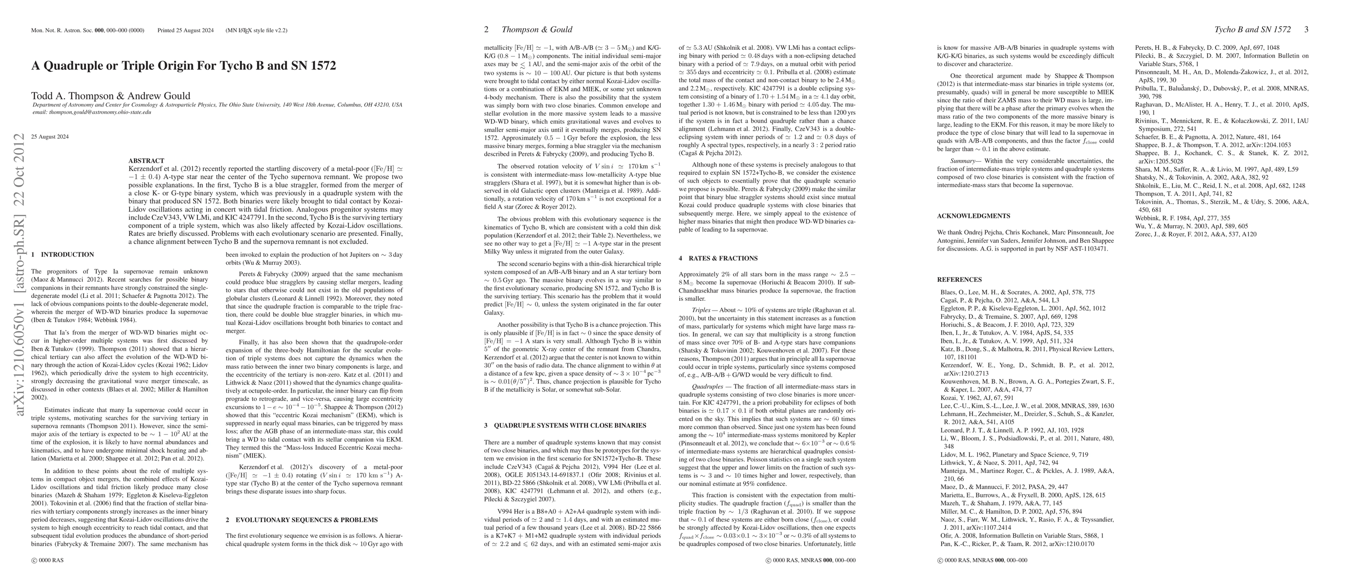 This paper explores two possible origins for Tycho B, a metal-poor A-type star near the Tycho supernova remnant: either it is a blue straggler formed from a binary merger in a quadruple system or the surviving tertiary of a triple system, both scenarios involving Kozai-Lidov oscillations. It also discusses the possibility of a chance alignment and outlines the problems associated with each evolutionary scenario.