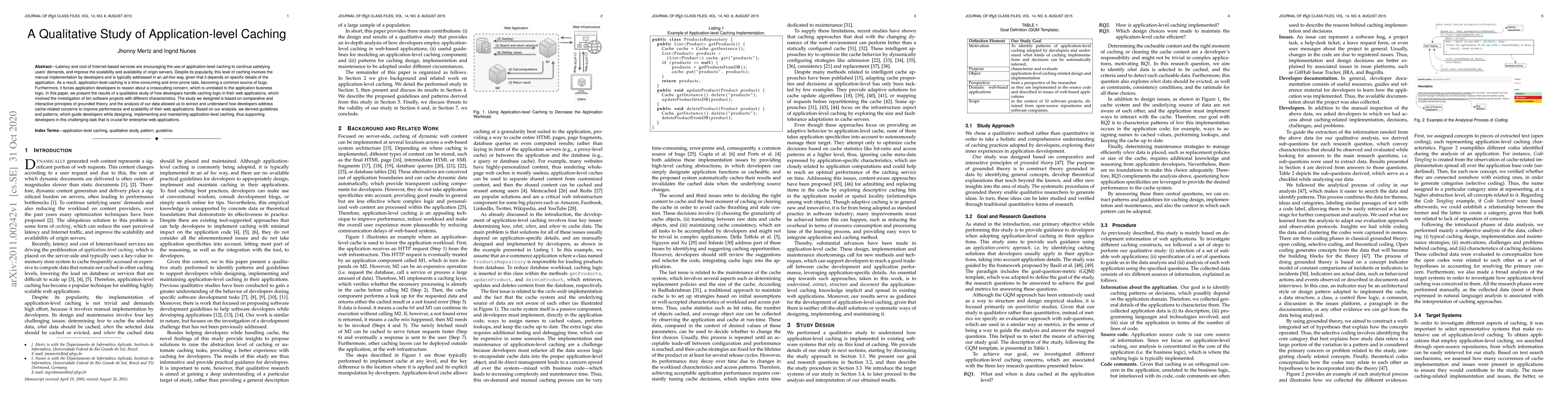 This paper presents a qualitative study on developers' approaches to application-level caching in web applications, revealing the challenges and ad-hoc methods used. The study resulted in guidelines and patterns to improve caching design, implementation, and maintenance, aiming to reduce bugs and enhance scalability.