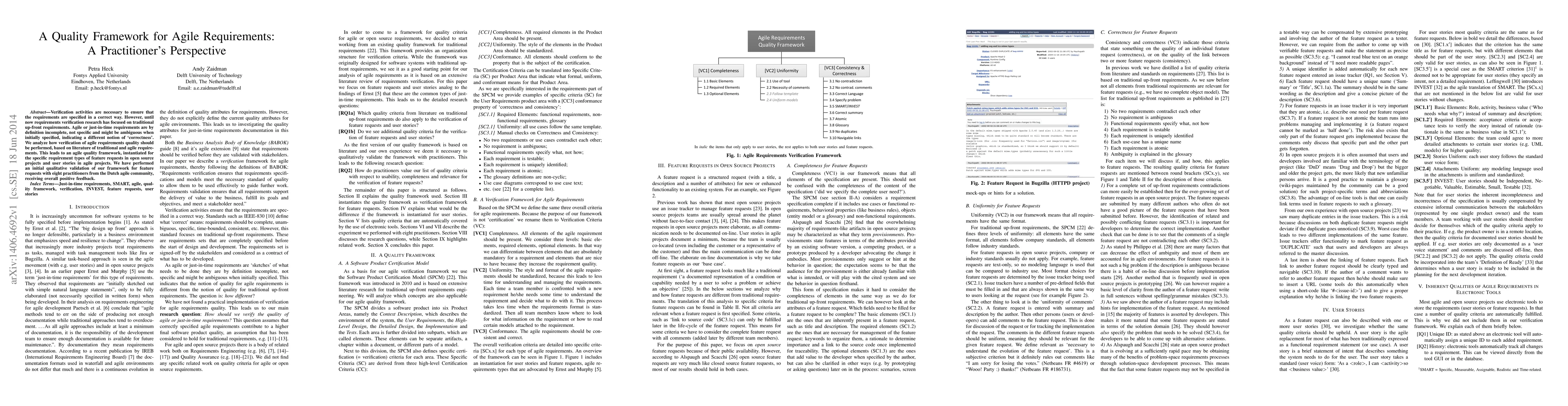 This paper proposes a quality framework for verifying agile requirements, focusing on the unique challenges of incomplete and ambiguous requirements in agile methodologies. Initial validation with eight Dutch agile practitioners yielded positive feedback, suggesting the framework's practical applicability.