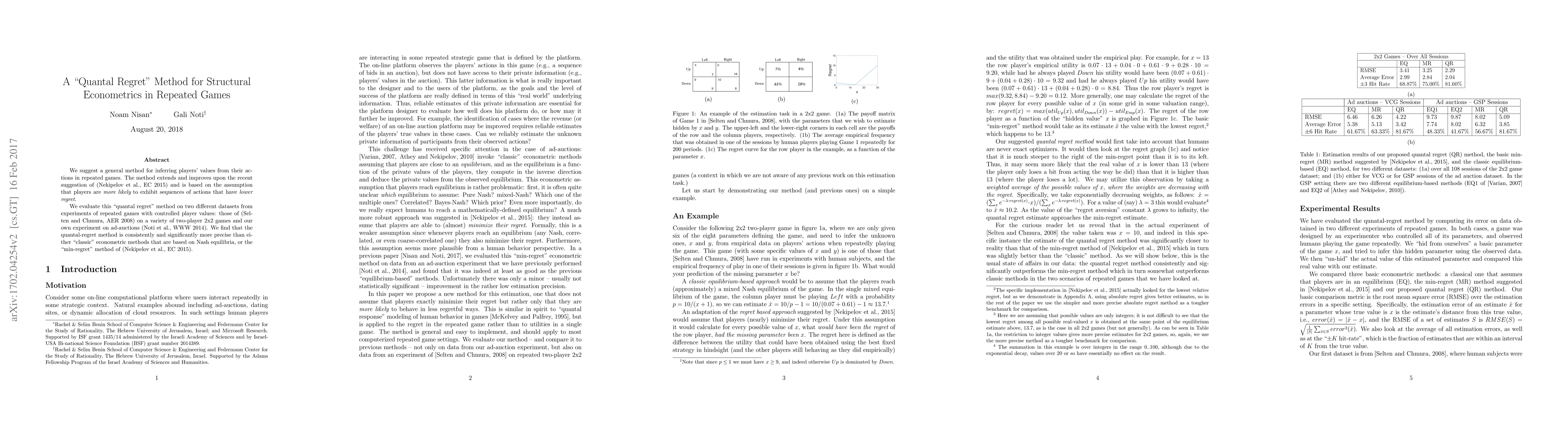 A new method, called quantal regret, is proposed to infer player values in repeated games; it outperforms existing methods in precision when tested on two datasets.