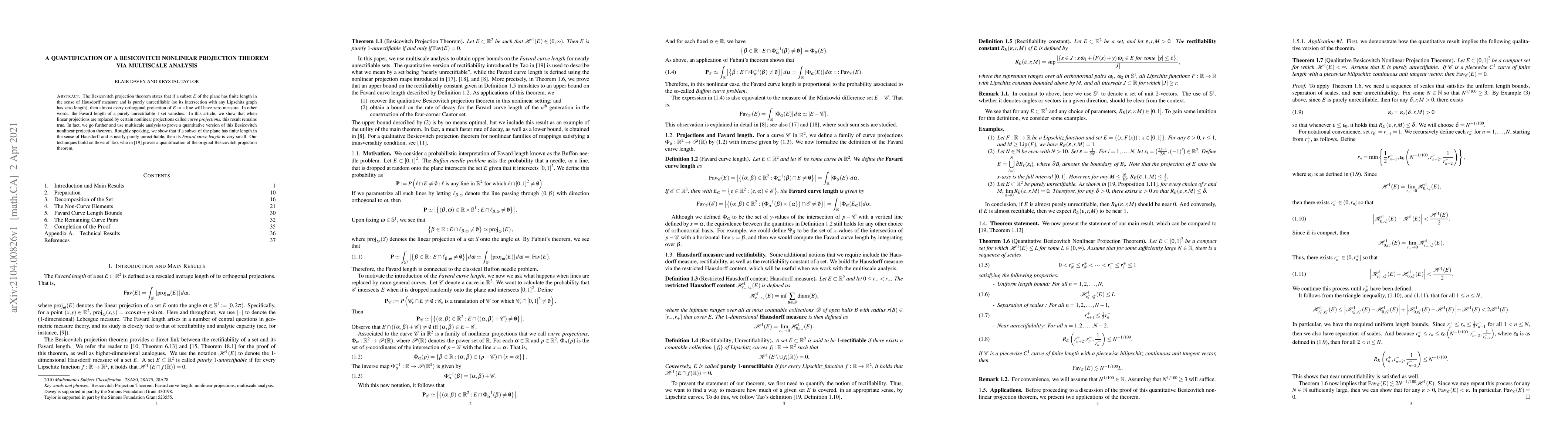 This paper quantifies the Besicovitch nonlinear projection theorem using multiscale analysis, demonstrating that nearly purely unrectifiable subsets of the plane have very small Favard curve length when subjected to nonlinear projections. The study builds on Tao's techniques for quantifying the original Besicovitch projection theorem.