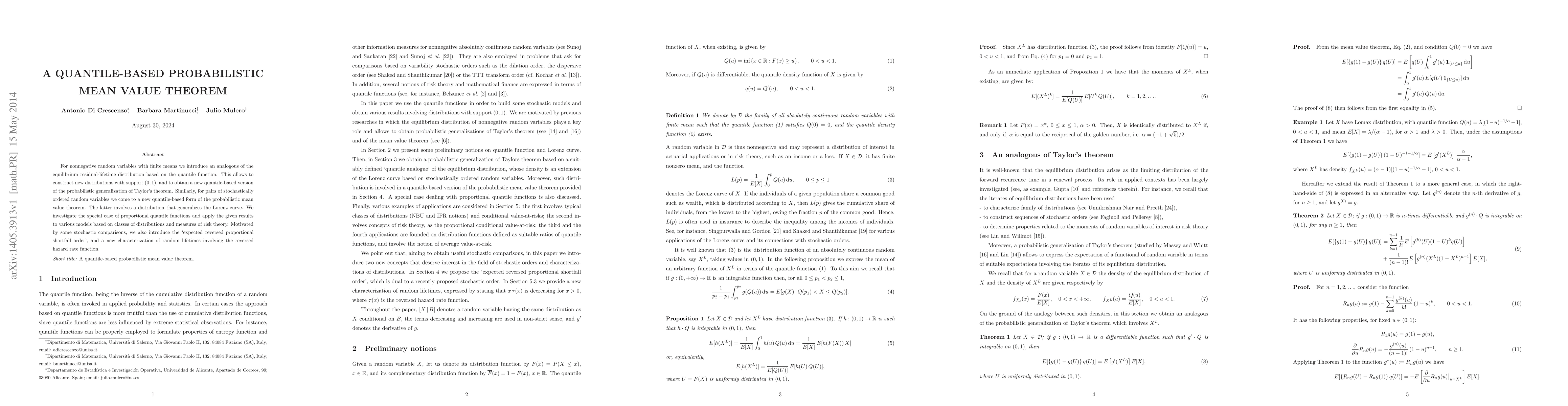 This paper introduces a new probabilistic mean value theorem based on quantile functions for nonnegative random variables, enabling the construction of new distributions with support (0,1) and generalizing Taylor's theorem. It also provides a new characterization of random lifetimes involving the reversed hazard rate function.