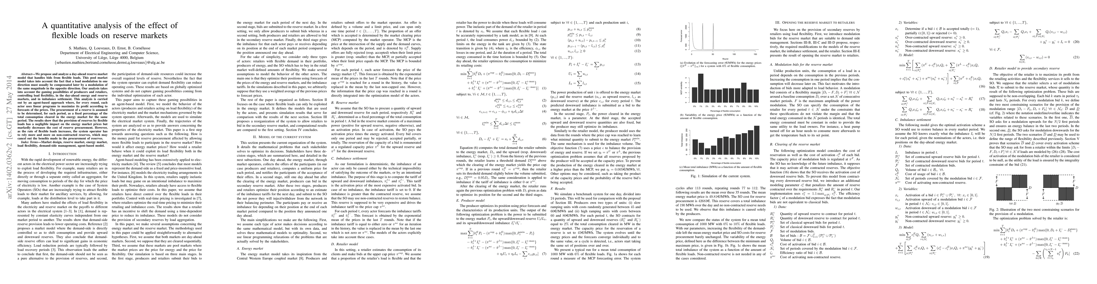 The study proposes a day-ahead reserve market model with flexible loads, showing negligible impact on energy market prices.