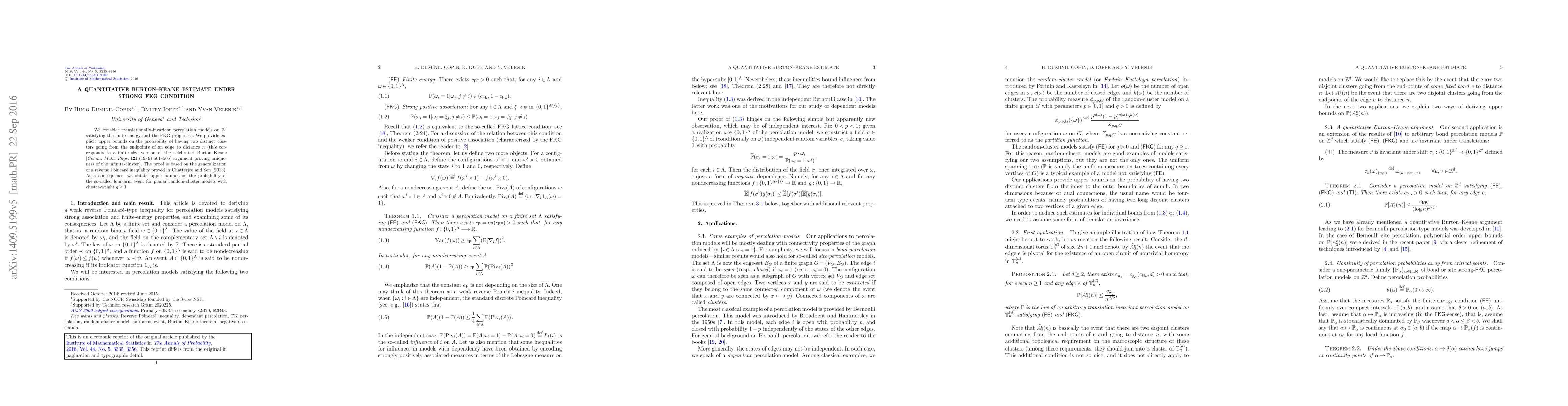 We consider translationally-invariant percolation models on $\mathbb{Z}^d$ satisfying the finite energy and the FKG properties. We provide explicit upper bounds on the probability of having two distinct clusters going from the endpoints of an edge to distance $n$ (this corresponds to a finite size version of the celebrated Burton-Keane [Comm. Math. Phys. 121 (1989) 501-505] argument proving uniqueness of the infinite-cluster). The proof is based on the generalization of a reverse Poincar\'{e} inequality proved in Chatterjee and Sen (2013). As a consequence, we obtain upper bounds on the probability of the so-called four-arm event for planar random-cluster models with cluster-weight $q\ge1$.