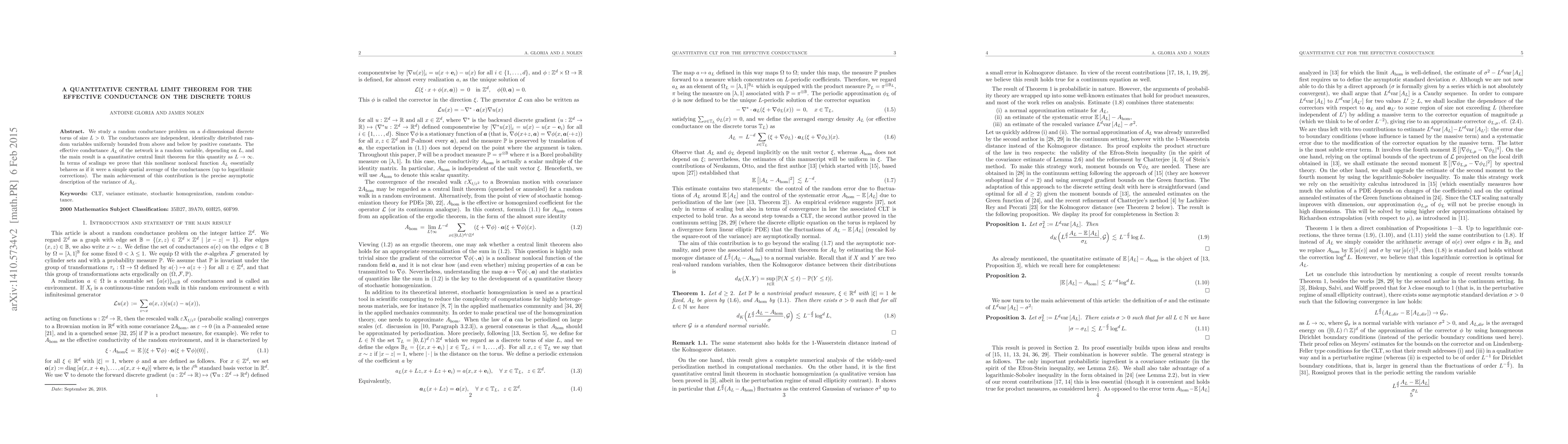 This research presents a quantitative central limit theorem for the effective conductance on a d-dimensional discrete torus as its size L approaches infinity. The key finding is that, despite being a nonlinear and nonlocal function, the effective conductance A_L essentially behaves like a simple spatial average of the conductances, with logarithmic corrections. The main contribution precisely describes the variance of A_L as L goes to infinity.
