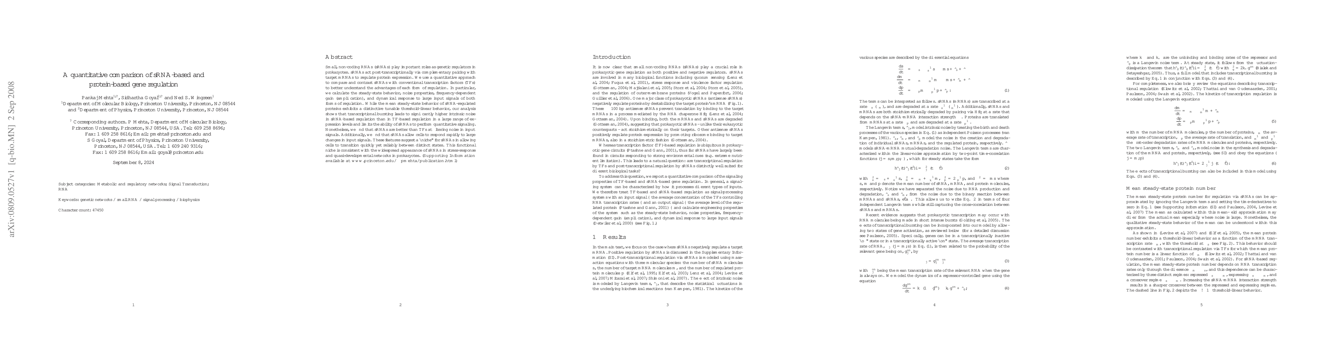 This paper quantitatively compares sRNA-based and protein-based gene regulation, finding that sRNAs exhibit tunable threshold-linear behavior and rapid response to large input signals but suffer higher intrinsic noise compared to transcription factors. Despite this, sRNAs excel in noise filtering and quick state transitions, suggesting their role in stress-response and developmental networks.