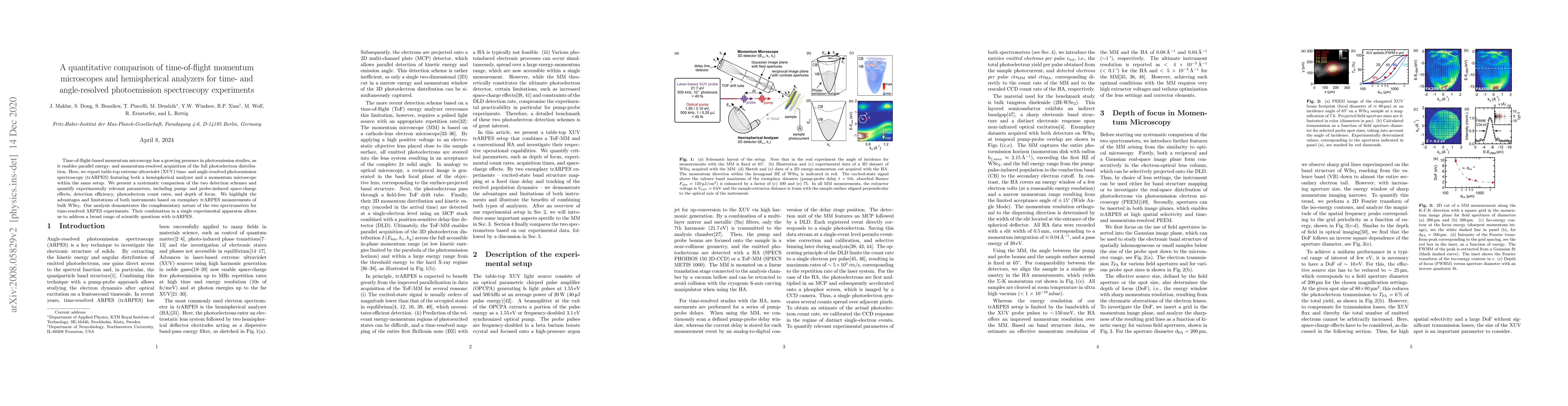 Time-of-flight-based momentum microscopy has a growing presence in photoemission studies, as it enables parallel energy- and momentum-resolved acquisition of the full photoelectron distribution. Here, we report table-top extreme ultraviolet (XUV) time- and angle-resolved photoemission spectroscopy (trARPES) featuring both a hemispherical analyzer and a momentum microscope within the same setup. We present a systematic comparison of the two detection schemes and quantify experimentally relevant parameters, including pump- and probe-induced space-charge effects, detection efficiency, photoelectron count rates, and depth of focus. We highlight the advantages and limitations of both instruments based on exemplary trARPES measurements of bulk WSe2. Our analysis demonstrates the complementary nature of the two spectrometers for time-resolved ARPES experiments. Their combination in a single experimental apparatus allows us to address a broad range of scientific questions with trARPES.