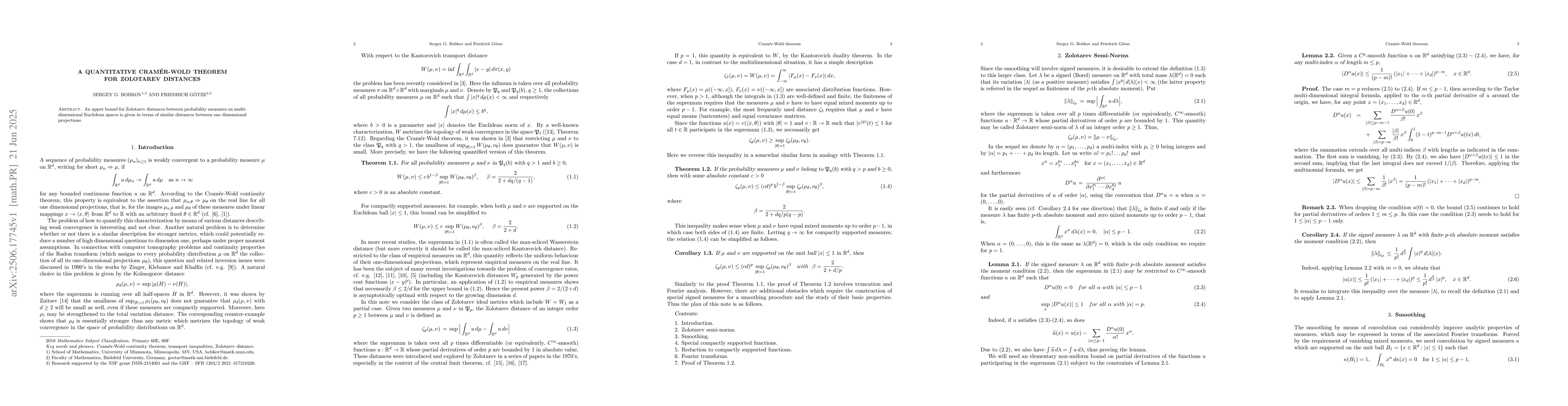 This research presents a Quantitative Cramér-Wold Theorem specifically for Zolotarev distances, providing an upper limit for these distances in multidimensional Euclidean spaces, derived from one-dimensional projection distances.