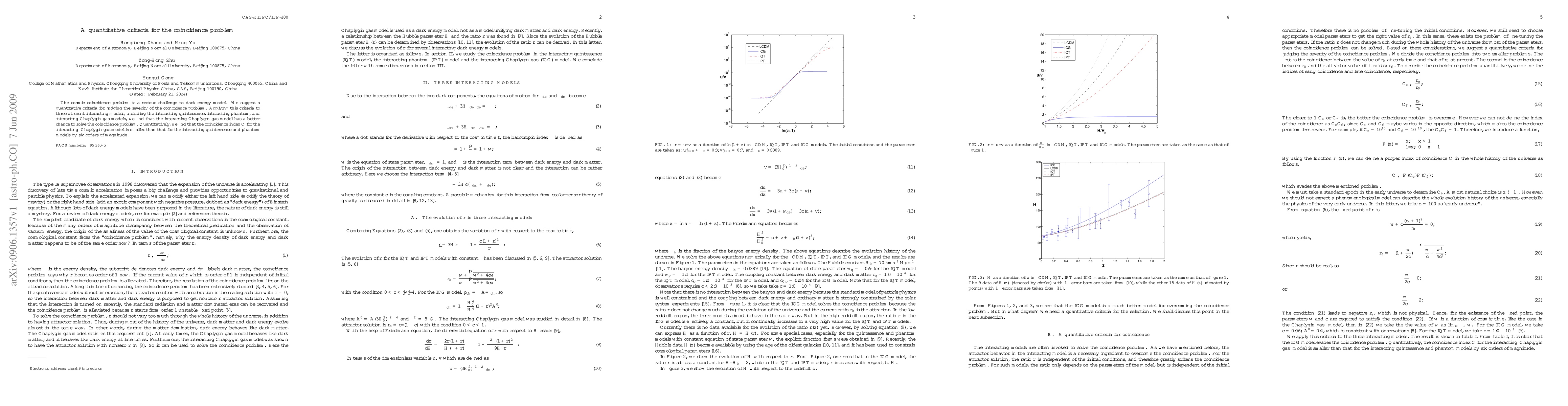 This research introduces a quantitative criteria to assess the cosmic coincidence problem in dark energy models. It finds that among interacting quintessence, phantom, and Chaplygin gas models, the Chaplygin gas model has a significantly smaller coincidence index, suggesting it offers a better resolution to the problem.