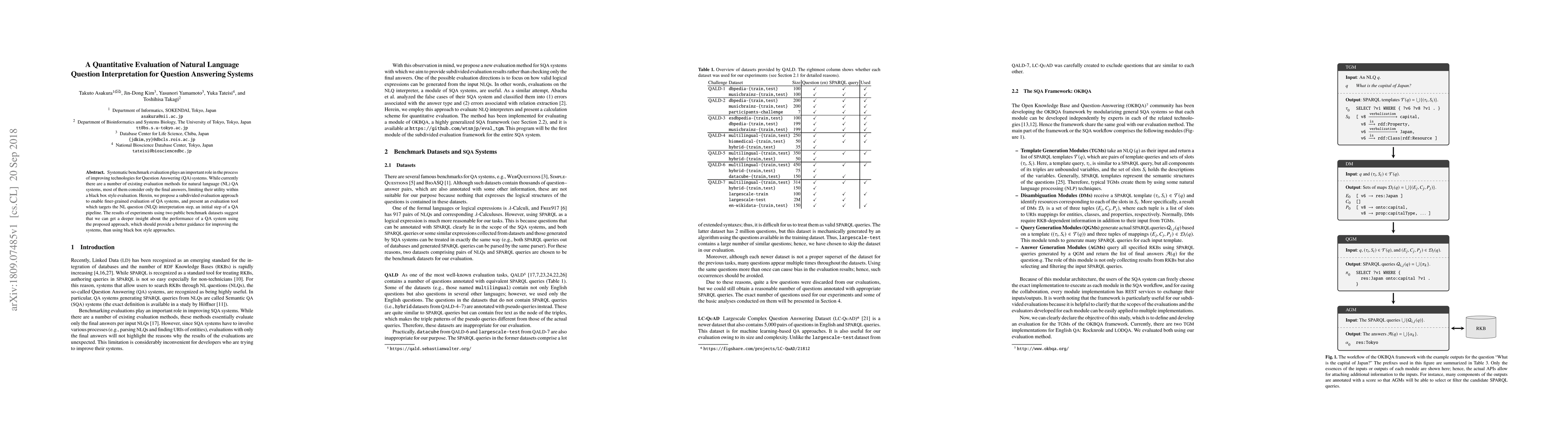 The paper proposes a subdivided evaluation approach targeting the Natural Language Question (NLQ) interpretation step of Question Answering (QA) systems, using two public benchmark datasets (QALD and LC-QuAD). It employs an evaluation tool to assess the performance of Template-based Graph Matching (TGM) implementations, Rocknrole and LODQALinked Open Data Question-Answering.