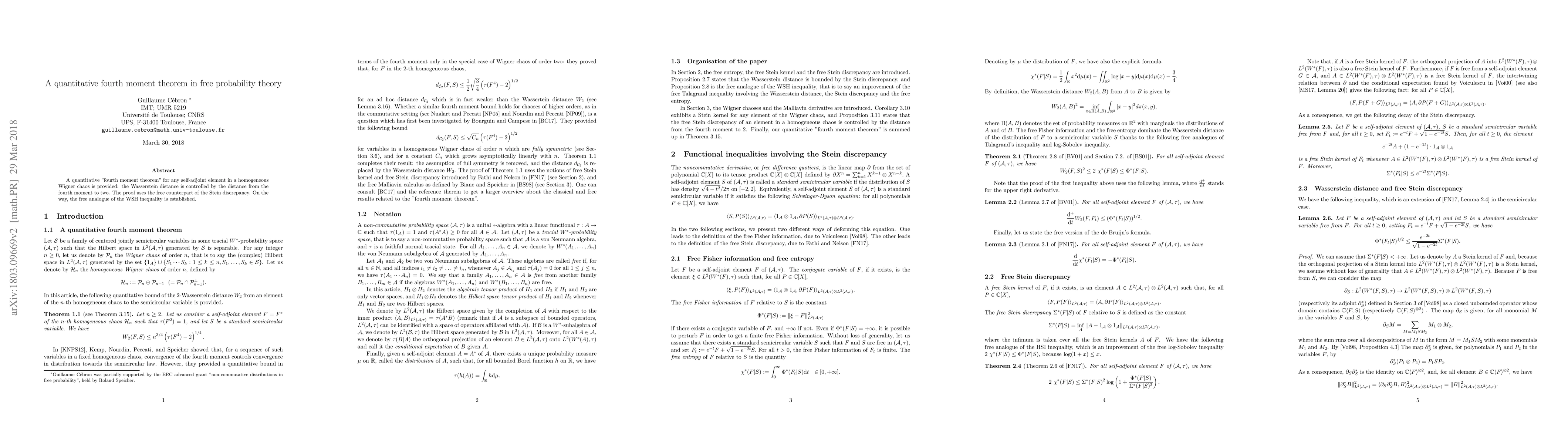 This paper establishes a quantitative "fourth moment theorem" for self-adjoint elements in a Wigner chaos, showing that the Wasserstein distance is controlled by the deviation of the fourth moment from two. The proof leverages the free counterpart of the Stein discrepancy and introduces the free analogue of the WSH inequality.