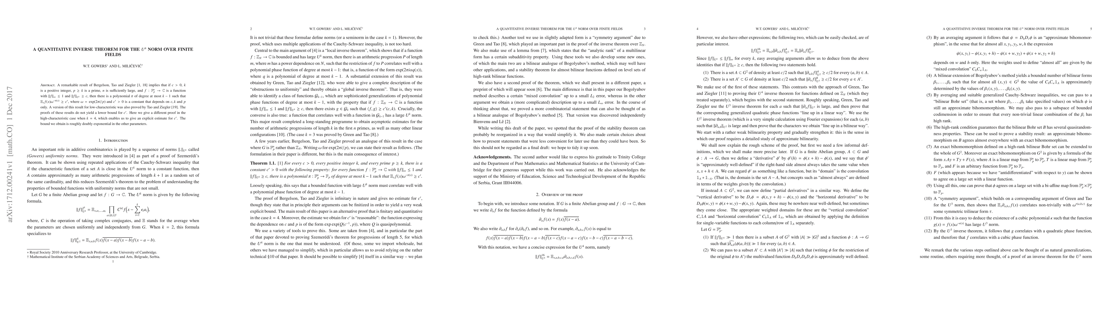 This paper presents a new proof for a quantitative inverse theorem concerning the $U^4$ norm over finite fields, providing an explicit doubly exponential lower bound for the constant $c'$ that arises in the theorem, improving upon previous results that did not yield such a lower bound.
